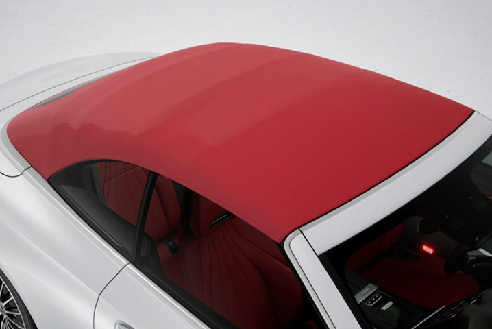 Accionamiento de la capota desde el interior mediante el interruptor de la capota situado en la consola central o desde el exterior mediante la llave del vehículo. La capota acústica de tela se puede abrir y cerrar de manera totalmente automática hasta una velocidad de marcha de 60 km/h. Elige el color de la capota a tu gusto, a juego con la pintura y el interior. La capota acústica de tela está disponible en los colores negro, gris urbano y rojo.