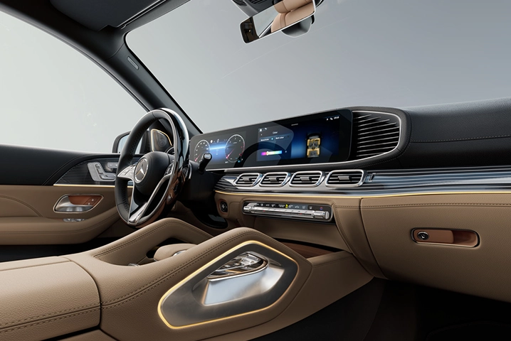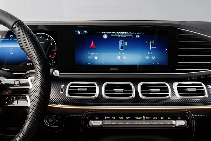 Con el innovador puesto de conducción widescreen, de alta calidad, puedes elegir entre cuatro estilos de visualización diferentes. Adicionalmente, el nuevo volante del Mercedes GLS es un auténtico talento multifuncional. Los botones Touch Control, dispuestos en posición ergonómica, permiten un control intuitivo de la navegación, la telefonía, la velocidad y las funciones de entretenimiento. Así tendrás todo a tu alcance sin necesidad de retirar las manos del volante.