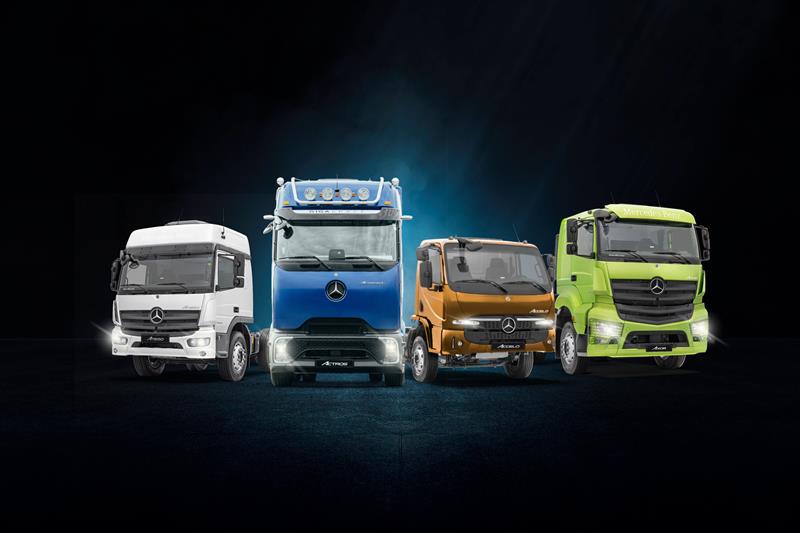 • Axor: Pensado para misiones exigentes de carga pesada, el nuevo Axor suma cabinas más espaciosas y equipadas, motor OM 460 de 449 CV, transmisión automatizada G 291-12, y todos los sistemas de seguridad activa que caracterizan a Mercedes-Benz. Es un modelo robusto, confiable y altamente rentable.