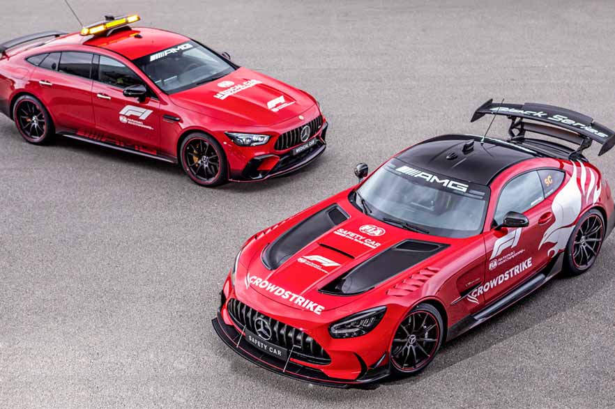 Comenzando por el modelo Mercedes-AMG GT Black Series que por primera vez se presenta como “safety car” de la Fórmula 1, mientras que el modelo Mercedes-AMG GT 63 S 4MATIC+ se estrena como automóvil médico oficial de la F1. La temporada 2022 se beneficiará de las variantes más potentes de estos dos modelos.