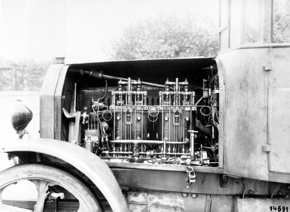 Mientras Benz & Cie. desarrollaba el camión diésel, Daimler- Motoren-Gesellschaft (DMG) en Berlín-Marienfelde estaba construyendo un motor diésel de inyección de aire para instalarlo en un camión que tenía casi la misma potencia.